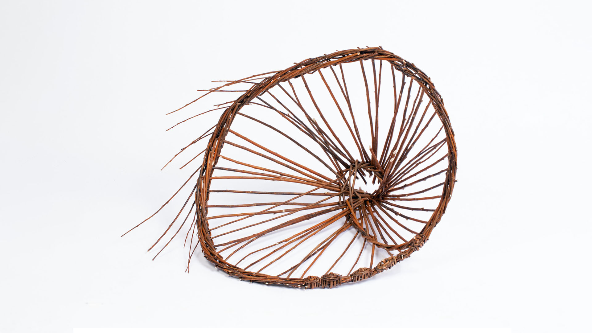 Foundational basketry techniques are my starting point in creating conceptual sculptures that challenge the utilitarian form. Basketry is an artistic medium traditionally passed down from artisan to artisan, and to that end, nationally and internationally known basketmakers have taught and influenced me, including Pat Hickman, Jo Campbell-Amsler, and Patrick Dougherty. I also spent a month studying extensively with traditional Irish basketmakers in Ireland.
